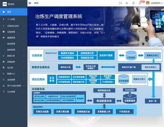 基于先進的物聯(lián)網(wǎng)思維和大數(shù)據(jù)分析手段,以完善的儀表檢測為基礎、礦熱爐智能控制模型為核心,包含能效評估系統(tǒng)、故障診斷系統(tǒng)、調度管理系統(tǒng)、生命周期管理系統(tǒng)、智能巡檢系統(tǒng)、數(shù)字孿生系統(tǒng)和遠程運維平臺的冶煉工程智能化解決方案,該系統(tǒng)目前已在新太元鉻鐵冶煉、碩豐鉻鐵冶煉項目中使用,取得了較好的應用效果。